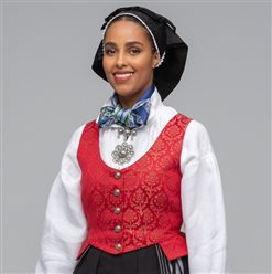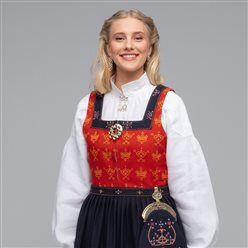 *Inkl. stakk med broderi, vest i ulldamask, brodert lue og veske. Skjorte, sølv og trøye kommer i tillegg.