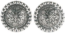 Borer i oksidert sølv med kruser. Desse har syhol og kan syast på bunaden. Vert leverte som par.