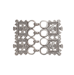 Borer i oksidert sølv med grøn stein i midten. Desse har øsken på baksida til montering på skinnlist. Vert leverte som par.. Passer til Sunnfjordbunad og Nordfjordbunad.