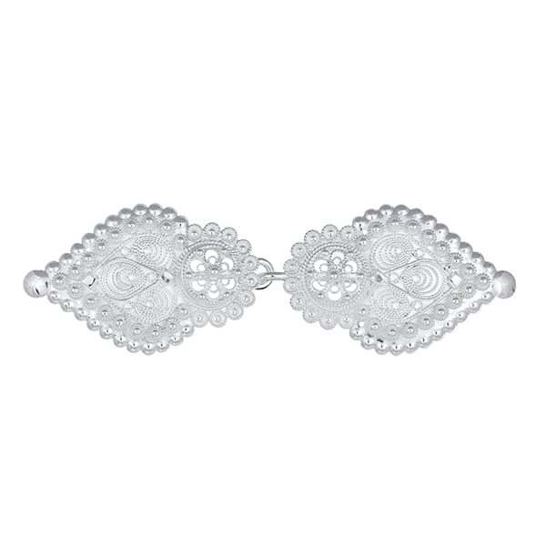 Fiskevatn og Dølemo jakka skal ha to spenner, en stor øverst og en liten nederst, denne passer som den største jakkespenna og er fin å kombinere med liten jakkespenne 3021.