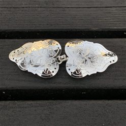 Fiskevatn og Dølemo jakka skal ha to spenner, en stor øverst og en liten nederst, denne passer som den største spenna og er fin å kombinere med liten gravert jakkespenne Holt 3421.
