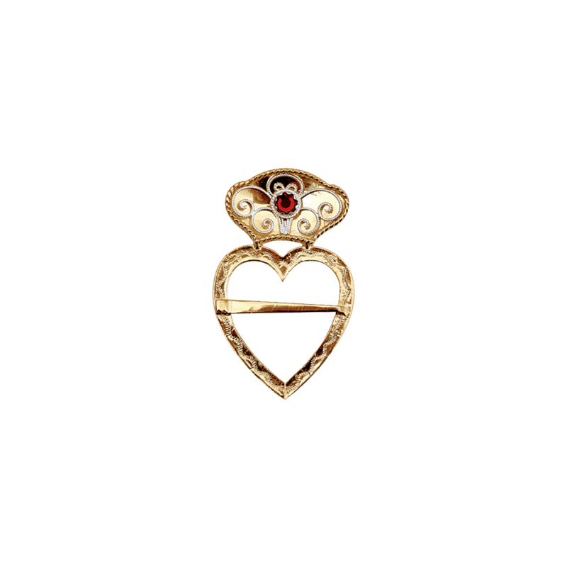 Sølje Fana Hjertesprette med raud stein, forgylt