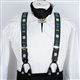 Bukseselene har ekte lærdeler i farget skinn. Ved fuktighet og varme kan det forekomme noe avfarging på en hvit skjorte. Ved vask forsvinner fargen på skjorten. Vi anbefaler å bruke sitronvask til skjorten. For å redusere avfarging kan man fukte en klut i eddikblanding (lik del vann og eddik) og tørke over skinndelene på bukseselene.