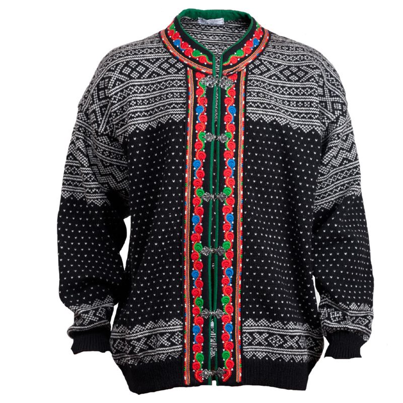 Broderier er brodert for hand. Kofta kan bestillast hand-eller maskinstrikka.