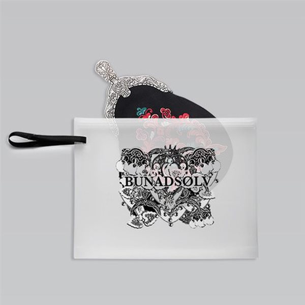 Enkel og fleksibel lagring av bunadsølv. Super til bruk på reiser/til å smle sølv til bunaden og for oppbevaring av alt fra vesker til søljer og belter. Posen er laget i øko-vennlig 100% resirkulerbar pvc, og farge i trykk er sertifisert miljøvennlig. Resirkulerbar, myk 5mm tykkelse. Med støpt hull og snor til å henge den på henger. Lukkemekanisme er zip lock til luft tett pose. Format: 30x22,5 cm med 5cm bred bunn.