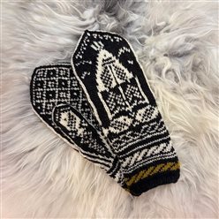 Votten selges i 2 fargevarianter, og er en medium damestørrelse strikket på strømpepinner 2,5.