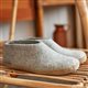 Filtsko laget av 100% ren naturlig ull med en såle laget av semi-vegetabilsk garvet kalveskinn.